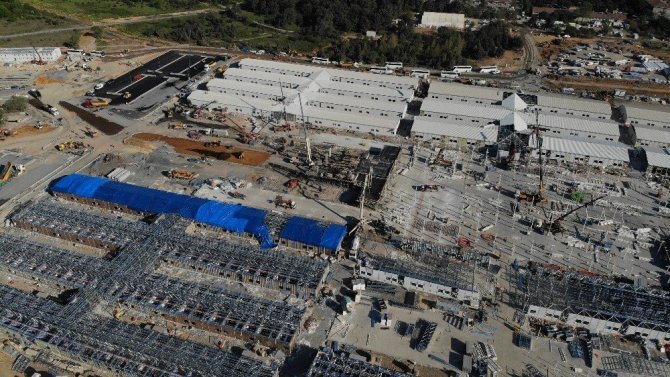 Salgına karşı Yeşilköy ve Sancaktepe’de tek katlı iki hastane inşa edilmeye başlanmıştı. Sancaktepe’deki bin 5 yataklı hastanenin inşaat çalışmaları sürüyor. İnşaat alanında çok sayıda iş makinesi ve işçi gün boyu gece gündüz demeden aralıksız bir şekilde çalışırken, beton zeminin tamamlanmasının ardından bazı binaların çelik konseksiyon duvar ve çatısının yerleştirme çalışmaları da devam ediyor.
