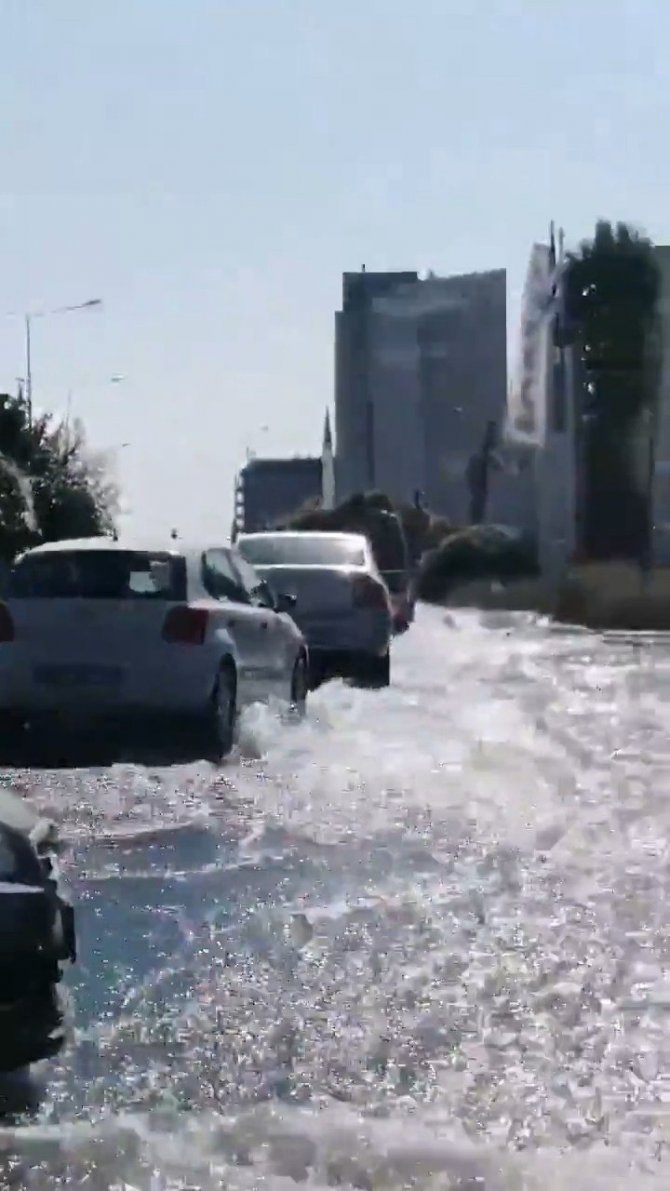 Sancaktepe’de havalandırma borusundan fışkıran su, yolu göle çevirdi