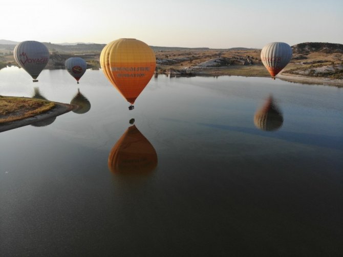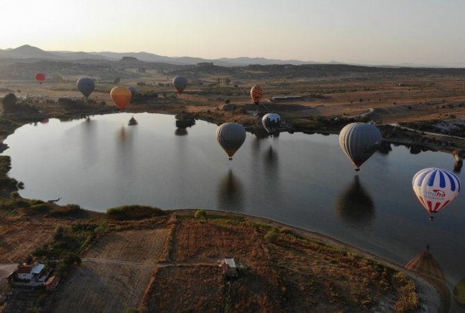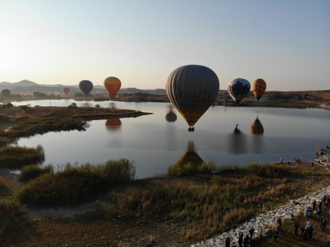 Afyonkarahisar'da Büyük Taarruz ve Zafer Haftası etkinlikleri kapsamında 3 bin yıllık geçmişe sahip Frig Vadisi'ndeki Emre Gölü'nde balon uçuşu gerçekleştirildi.