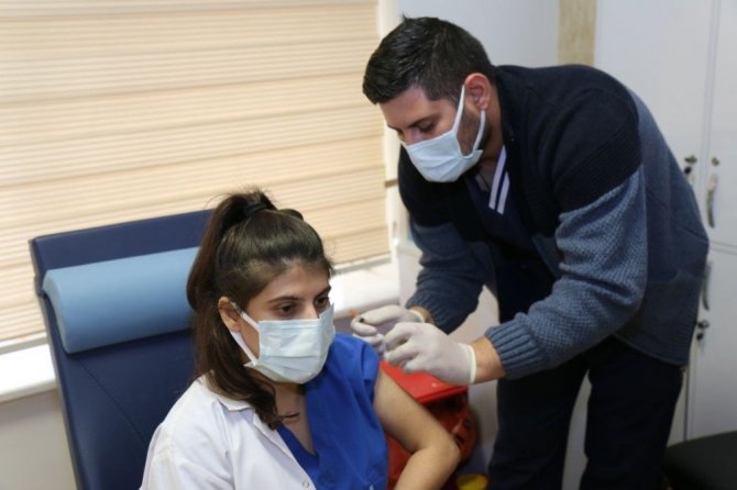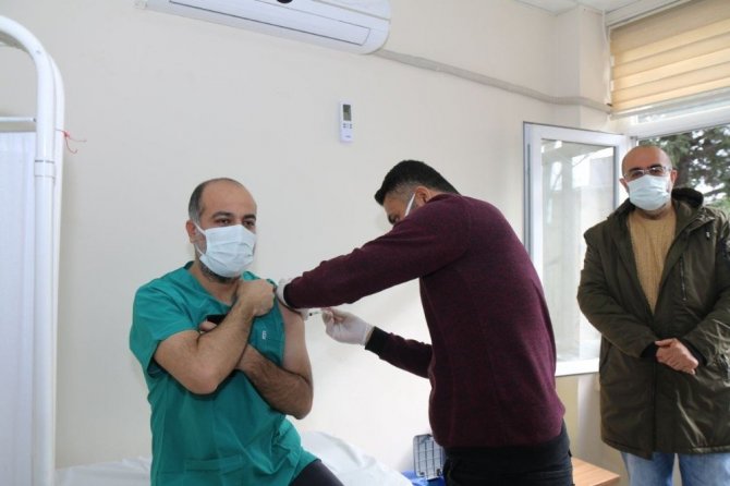 Tüm Türkiye'de başlayan aşılama kapsamında Şanlıurfa'da sağlık personellerine korona virüs aşılarının yapılmasına başlandı.