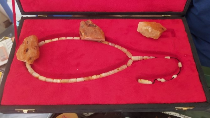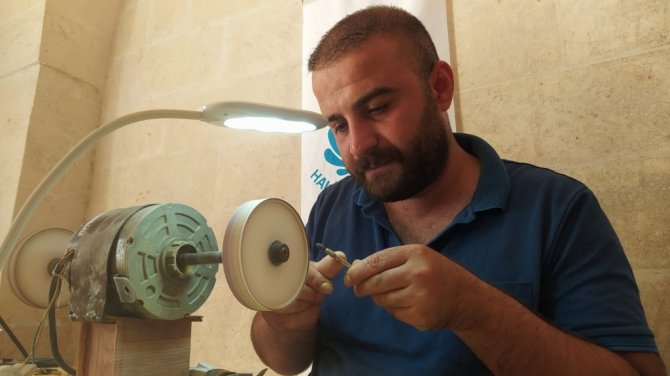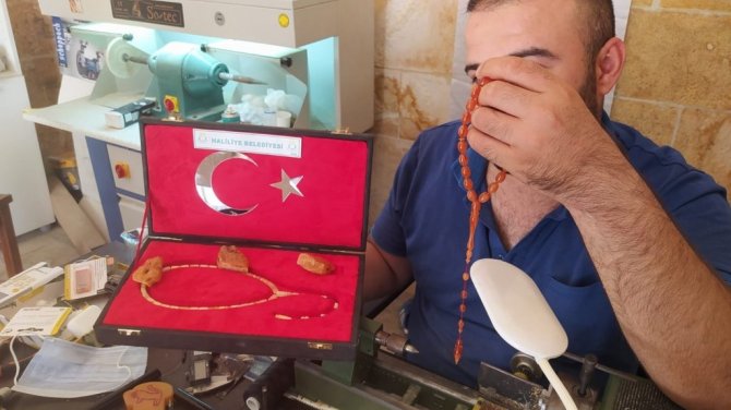 Yaklaşık 12 yıldır tespih işlemeciliği yapan Gökhan Beyazdiş, "2009 yıllından bu yana bu işi yapıyorum. Tespih günümüzden bu yana zikir amaçlı kullanılıyordu. Genellikle 99 taneli tespihler zikir amaçlı kullanılıyor. 33 taneli tespihlerde genelde stres amaçlı kullanılıyor. Fiyatları da malzemesine göre değişir. Ateş kehribar, sıkma kehribar, damla kehribar gibi çeşitleri vardır. Sıkma kehribar biraz üst düzey malzeme olduğu için fiyat olarak diğerlerinden daha pahalı. Sıkma kehribar 1900'lü yıllarda bir profesör tarafından Almanya'da dökülüyor. Adam nesli boyunca döküyor. Formülünü kimseye söylemiyor. O yüzden Osmanlı sıkması rağbet görüyor ve kıymetlidir. Damla kehribarda çam ağacının fosilleşmiş halidir. Çamın üstündeki bal dokusundan adını alır. Çamın altındaki reçine toprağın altında bir asırlık kaldıktan sonra kaya haline gelir ondan sonra işlenir. Daha erken bir zamanda çıkardığı zaman bu pek sağlıklı olmaz, çalışılmaz ve kırılır. Ateş kehribarda aynı şekilde 1900'lü yıllarda kumar zarları olarak kullanılıyordu. Şimdilerde ise zikir tespihi ve stres tespihi haline getiriyoruz. Pandemi nedeniyle de insanlar sürekli evde oturduklarından dolayı stres atmak için baya bir rağbet gösteriyor. Biz burada hediyelik tespihlerde yapıyoruz. Hediyelik eşyalar üzerine Göbeklitepe figürleri yapıyoruz. Daha çok tespih ağırlıklı çalışıyoruz" diye konuştu.
