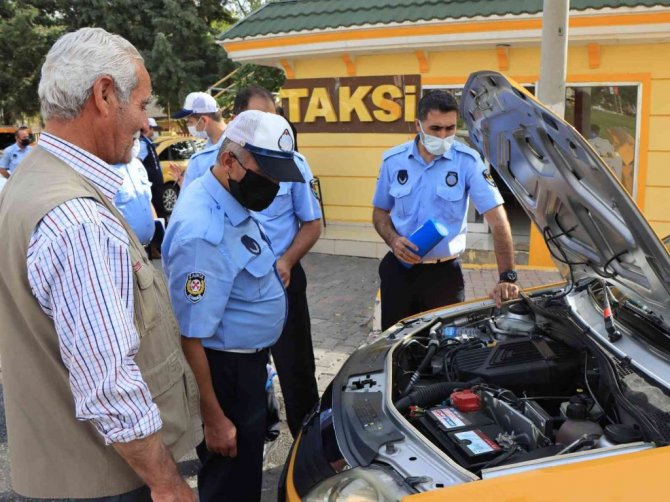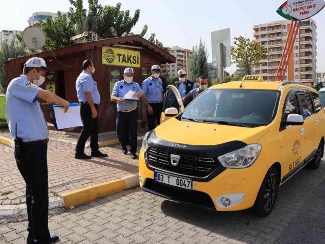 Şanlıurfa Büyükşehir Belediyesi zabıta ekipleri, ticari taksileri denetleyerek şoförleri de kurallara uymaları konusunda uyarıyor.