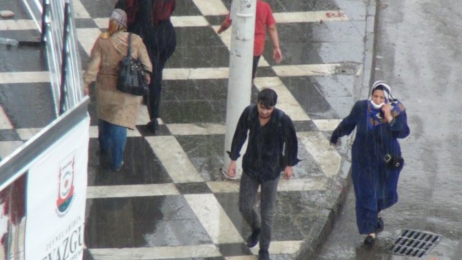 Kent merkezinde etkili olan yağmur nedeniyle hava sıcaklığı düştü. Zaman zaman şiddetini arttıran yağmurda ıslanmak istemeyen vatandaşlar buldukları korunaklı yerlere sığındı. Sağanak yağış nedeniyle sürücüler trafikte zaman zaman zor anlar yaşadı.