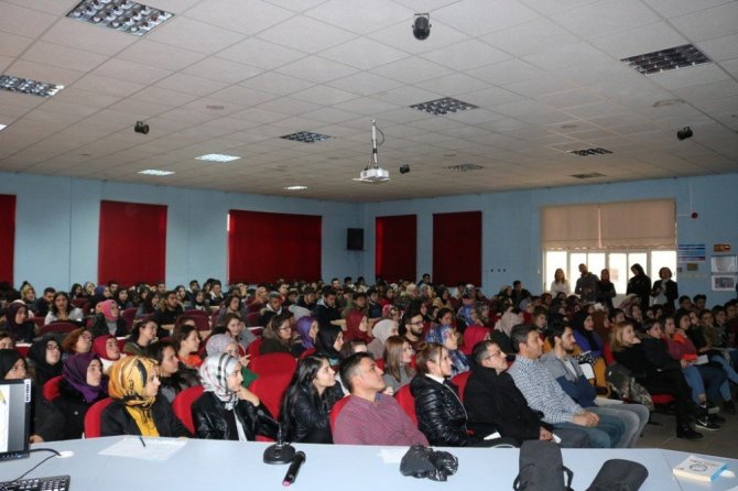 Yüksekokul konferans salonunda Simav Sosyal Hizmet Merkezi Müdürlüğü Personeli İklime Gündüz tarafından verilen ‘Madde bağımlılığı ile mücadele’ konulu konferansa öğretim görevlileri ve öğrenciler katıldı.