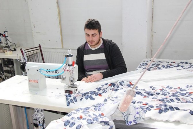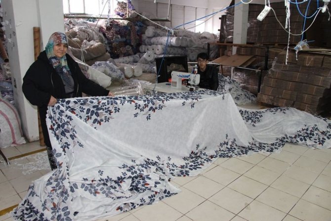 Bedri Yıldız ve Aziz Özçelik 40 kişinin çalıştığı ve üretim alanında her türlü ev tekstil ürünlerinin dikimi ve üretiminin yapıldığını söylediler.