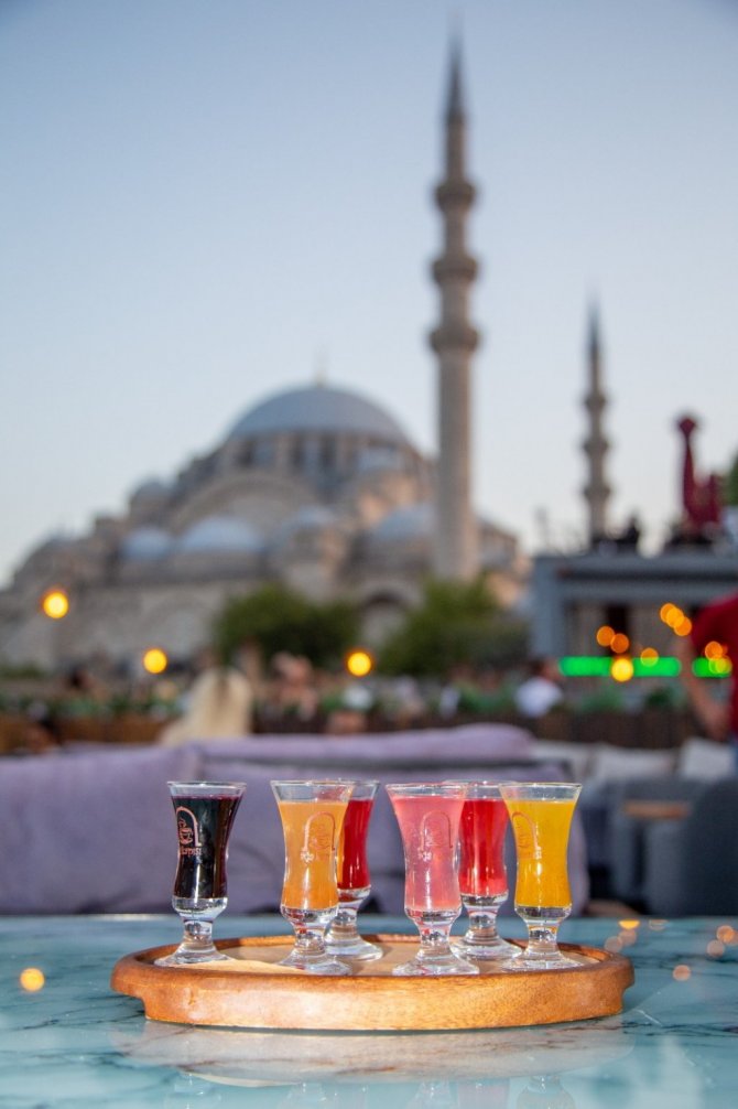 Sarayburnu'ndan sonra şehrin siluetinde en fazla söz sahibi olan ikinci tepe olan Süleymaniye'den hem Haliç'i hem Boğaz'ı seyredebilecek mekânlar, Osmanlı mutfağını yaşatmayı sürdürüyor.