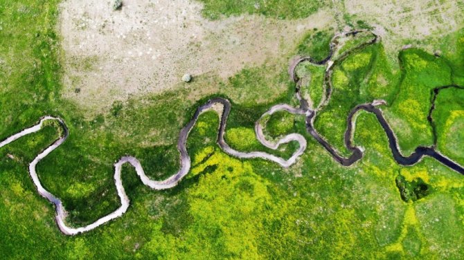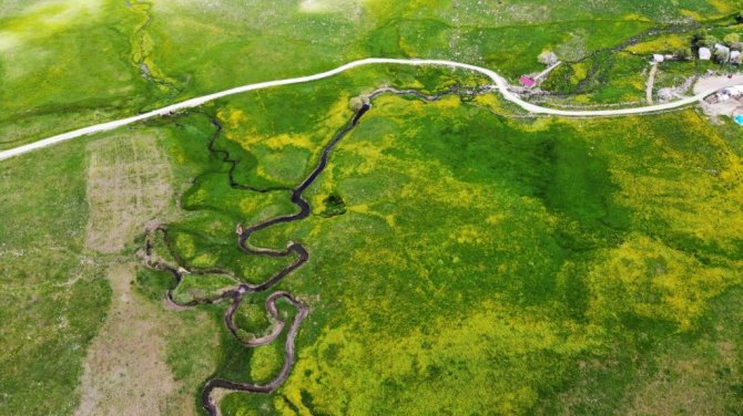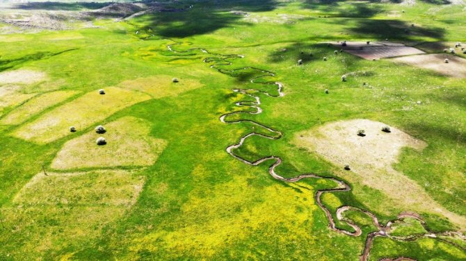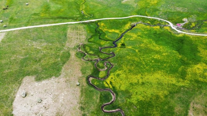 Sarı çiçeklerin arasındaki menderesler hayran bırakıyor