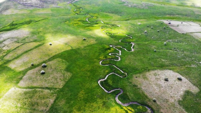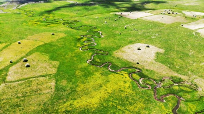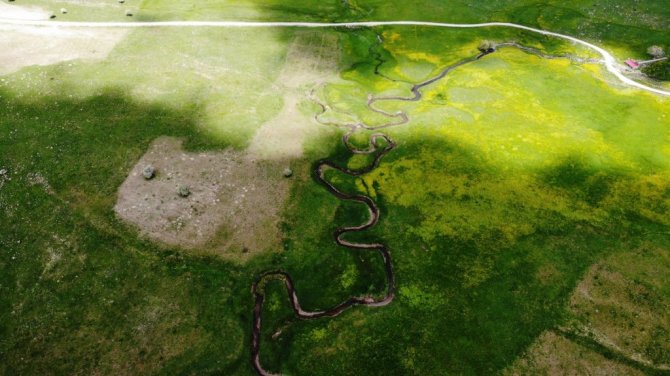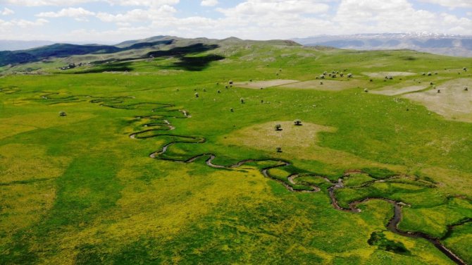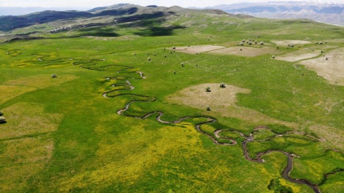 Hamurpet Gölleri ve dağlardaki karların erimesiyle oluşan menderesler, doyumsuz seyir zevki sunan görüntülere sahne oldu. Sarı çiçekler arasından süzülerek geçen menderesler, görsel şölen sunuyor. Bulut gölgesi eşliğinde vadiden akan mendereslerin havadan görüntülenmesi ortaya eşsiz görüntüler çıkarıyor.