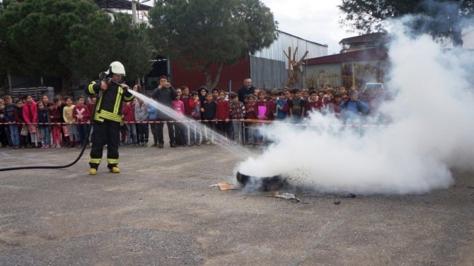 Program kapsamında sivil savunma konulu şiirler öğrenciler tarafından okunurken, itfaiye görevlisi Ali Kaçmaz tarafından olası bir afet karşısında yapılması gerekenler öğrencilere uygulamalı gösterilerek anlatıldı.