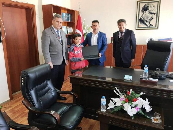 Sarıgöl Kaymakamından başarılı öğrenciye dizüstü bilgisayar