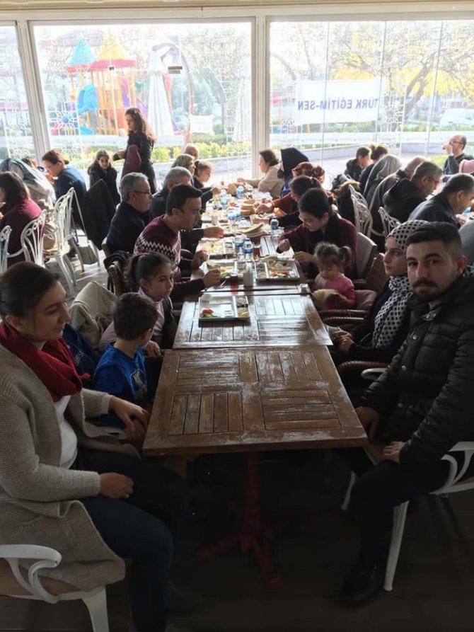 Türk Eğitim Sen üyeleri düzenlenen kahvaltılı programda bir araya geldi. Sarıgöl Belediyesi Siteler Mahallesi Park Kafetarya’da bir ayara gelen öğretmen ve aileleri birbirleriyle taşıma ve istişarelerde bulunma imkanı buldu. Sarıgöl Türk Eğitim-Sen Şube Başkanı Fahri Sarıtaş, "Türk Eğitim-Sen Sarıgöl Şubesi olarak üyemiz olan arkadaşlarımız ve eşleri ile kaynaşma amaçlı kahvaltı düzenledik. Kahvaltıda eğitim sorunlarını masaya yatırdık. Bu arada Ulu önder Başöğretmenimiz Mustafa Kemal Atatürk olmak üzere şehit öğretmenlerimizin ve halen görevde olan öğretmenlerimizin öğretmenler gününü kutladık" dedi.