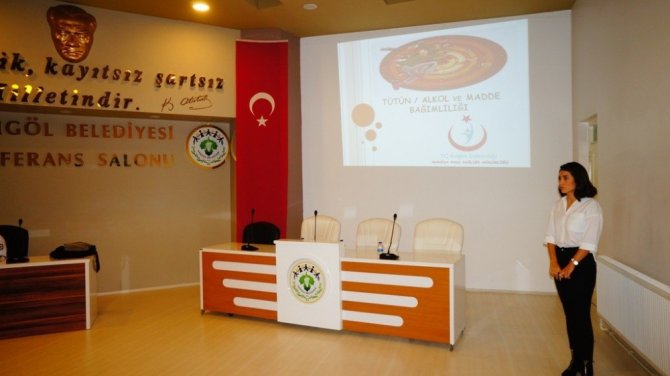 Sarıgöl Belediye Konferans Salonunda Dr. Ceyda Göztepe tarafından verilen seminerde okul müdürleri, rehber öğretmenler ve daire amirleri madde bağımlılığı ve madde bağımlılığı ile mücadele konusunda bilgilendirildi.