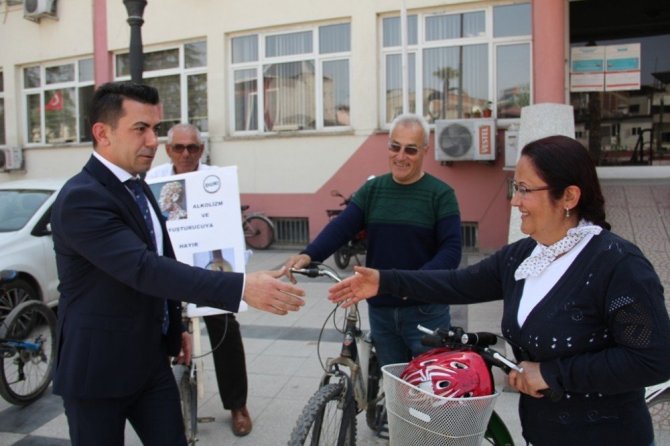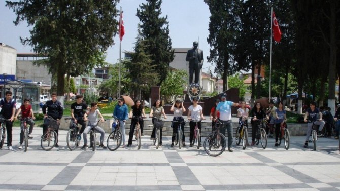 Manisa’nın Sarıgöl ilçesinde öğrenciler tarafından sağlıklı yaşama dikkat çekmek amacıyla bisiklet turu düzenlendi.