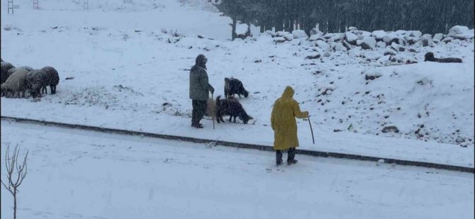 Sarıkamış'ta etkili olan yağmur ve soğuk hava yerini kara bıraktı. Sabah erken saatlerde başlayan kar yağışı etrafı beyaza bürürken, vatandaşlar güne karla başladı. Kar üzerinde çobanlar tarafından otlatmaya çıkarılan hayvanlar ise kartpostallık görüntüler oluşturdu.
