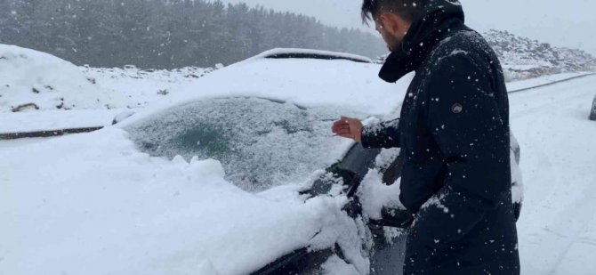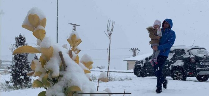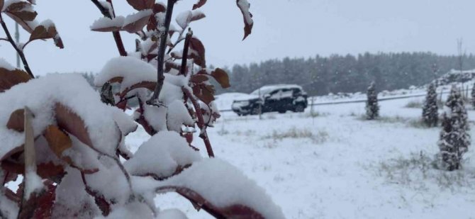 Kars'ın Sarıkamış ilçesinde havanın aniden soğumasıyla birlikte kar yağdı.
