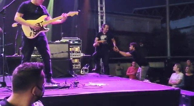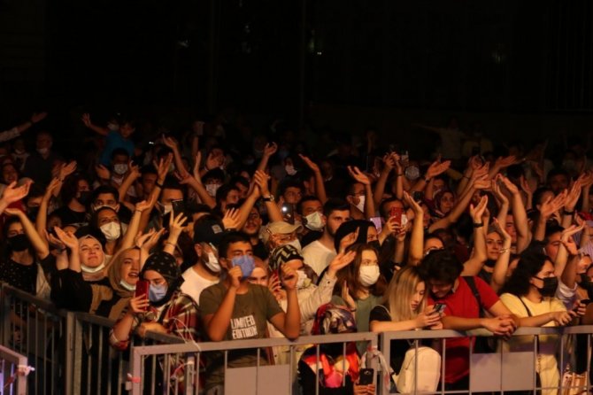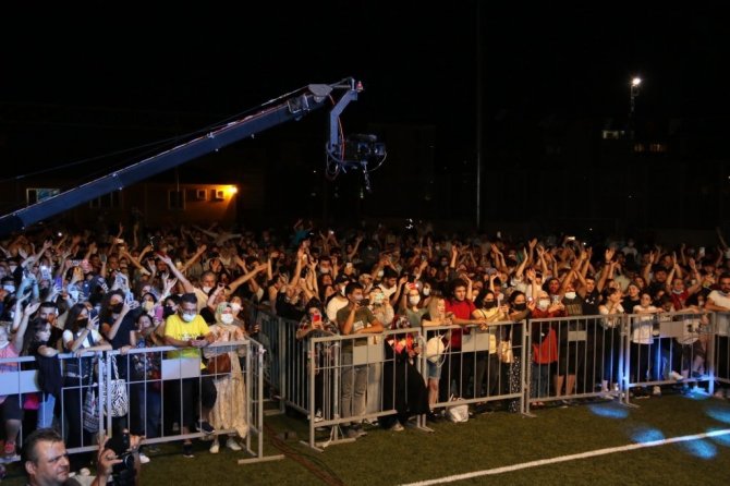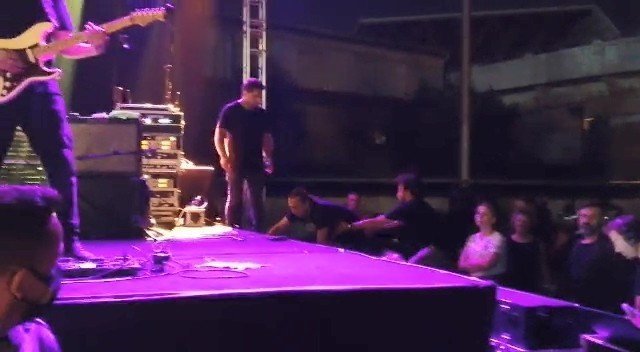 Kocaeli'nin Gebze ilçesinde konser veren ünlü şarkıcı Kıraç, sahneye çıkarken yere düşmekten son anda kurtuldu.