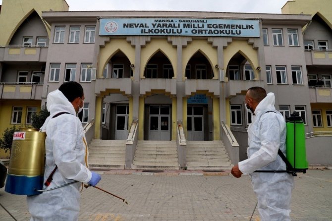 Saruhanlı Belediyesi okulları dezenfekte etti