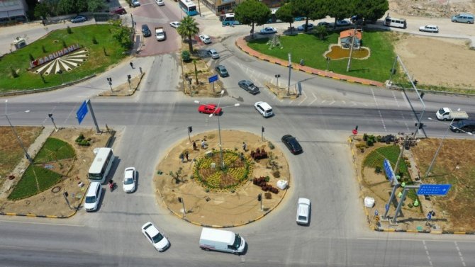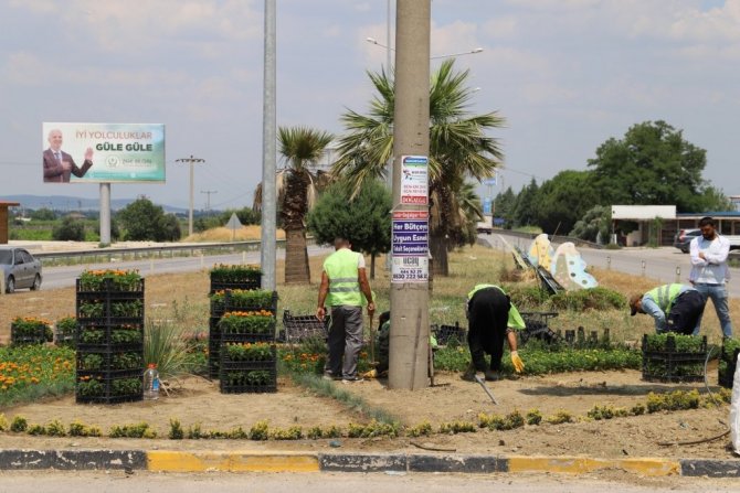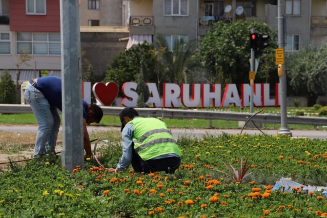 Saruhanlı kavşağında peyzaj düzenlemesi başladı