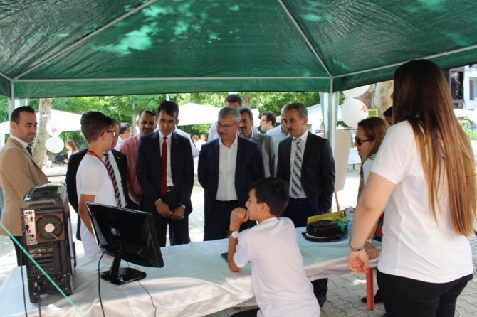 Açılışta Bilim Fuarında görevli Neval Yaralı Milli Egemenlik Ortaokulu öğrencileri Fen Bilimleri Öğretmenleri Hikmet Aksaç eşliğinde Fen Andı içti. Daha sonra tasarlanan projeler katılımcılar tarafından incelendi. Neval Yaralı Milli Egemenlik Ortaokulu bahçesinde sergilenen çalışmalar protokol tarafından da ilgiyle izlenip beğenildi.