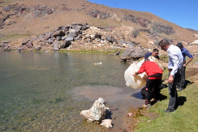 Sat Buzul Göllerine 60 bin yavru sazan bırakıldı