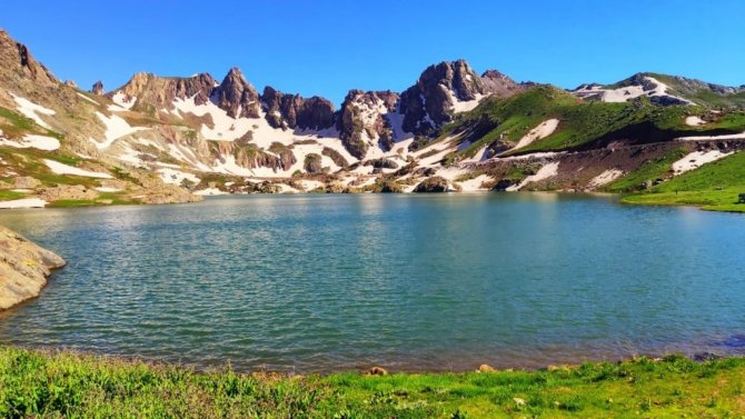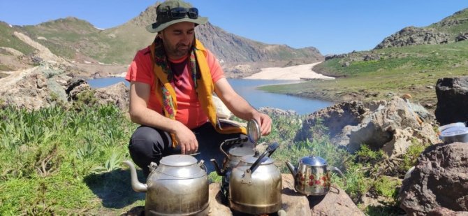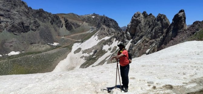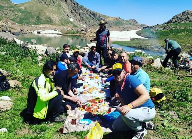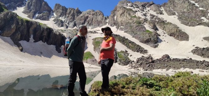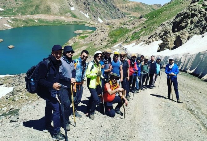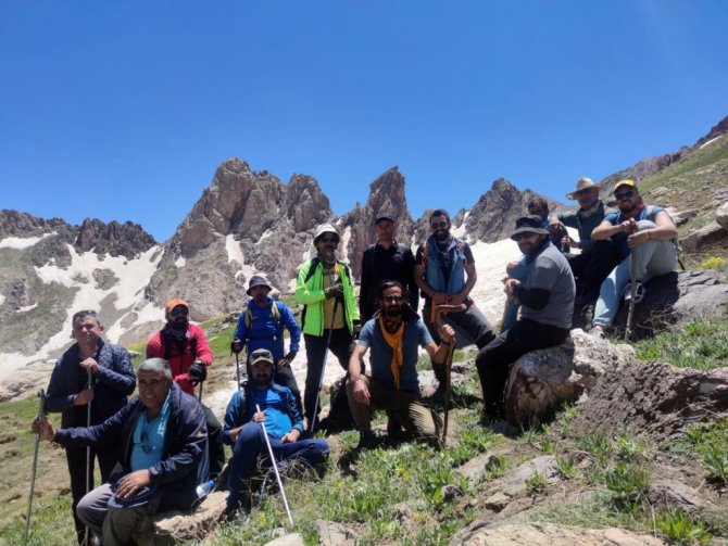 Hakkari'nin Yüksekova ilçesindeki 3 bin 400 rakımlı Sat Gölleri bölgesinde dağcılar doğa yürüyüşü yaptı.