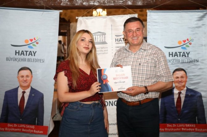 Daha sonra kursu başarı ile tamamlayan kursiyerlere Hatay Büyükşehir Belediye Başkanı Lütfü Savaş başarı belgelerini ve sertifikalarını verdi.