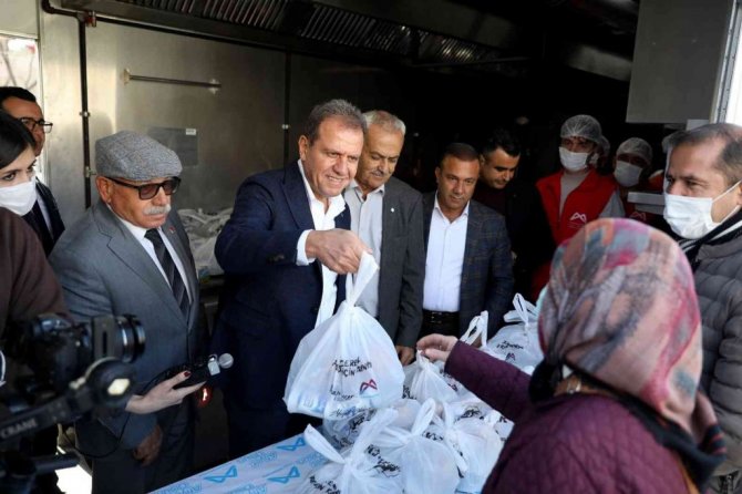 Başkan Seçer, gezici olarak ilçeleri dolaşan ve Mut'ta bulunan "Mobil Mutfak Tırı'ndan bütün vatandaşlara yemek dağıtırken, "Şimdi burada bizim mutfak tırımızı görüyorsunuz. Mutfak da faaliyete başlamış. Burada benimle beraber olan, bu nezaketi gösteren, buraya kadar gelen halkımıza; "bugün yemek ikramı benden olsun ama faturayı Vahap Seçer adına kesin" dedim. Bugün yemekler benden" dedi.