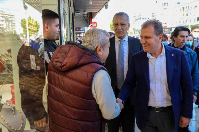 Mersin Büyükşehir Belediye Başkanı Vahap Seçer, Mezitli Belediye Başkanı Neşet Tarhan ve Yenişehir Belediye Başkanı Abdullah Özyiğit, Mezitli ilçesinde esnaf ziyaret etti, vatandaşlarla bir araya gelerek sorunlarını dinledi. Başkan Seçer, "Sosyal belediyecilik, toplumun her kesimine dokunmaktır. Mersin'in dört bir tarafı bizim için eşit. Hizmete susamış, ihmal edilmiş, hizmet bekleyen yerlere pozitif ayrımcılık yapacağız" dedi.
