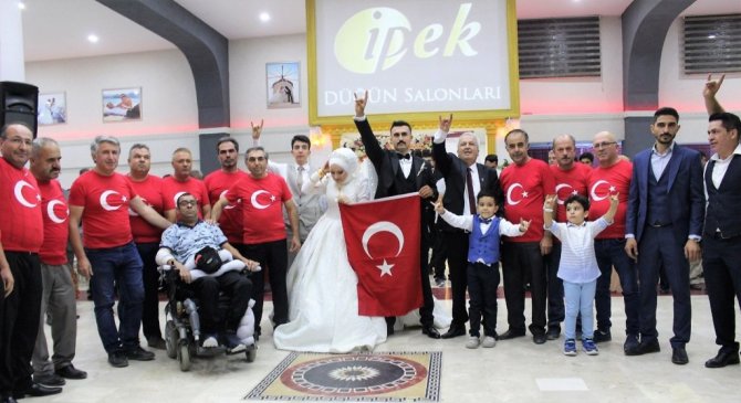 Şehidin silah arkadaşlarından Aydın Selçuk ise, "Asker arkadaşımızın ağabeyini, düğününde yalnız bırakmak istemedik. Mutlu gününde yanında olabildiğimiz için biz de gururluyuz" ifadelerini kullandı.