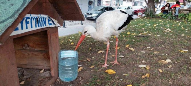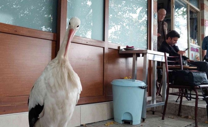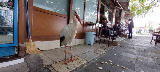 Göç yolundaki sürüden ayrılan leylek, Tekirdağ'ın Süleymanpaşa ilçesindeki Bedesten Esnafına sığınan leylek, şehir hayatına alıştı.