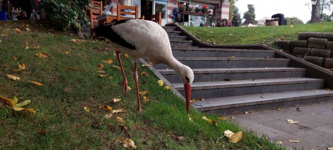 Şehir hayatına alışan leylek sürüsünü unuttu