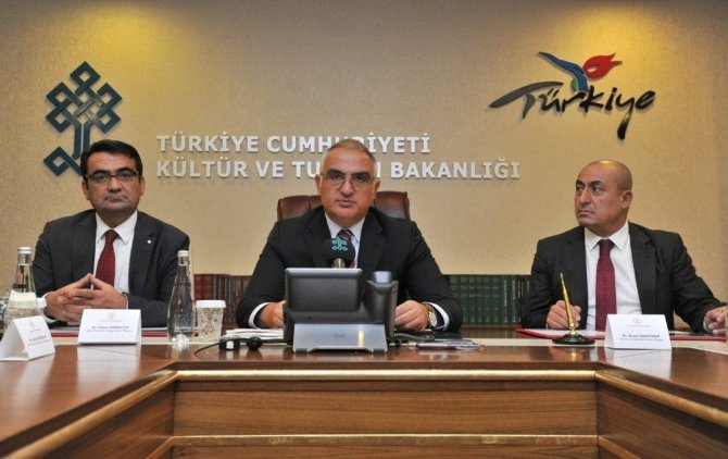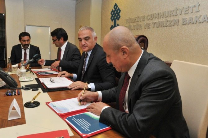 Kültür ve Turizm Bakanı Mehmet Nuri Ersoy’un açıklamalarının ardından iş birliği protokolü Bakanlık Yatırım ve İşletmeler Genel Müdürü Murat Demirören ile TMMOB Şehir Plancıları Odası Başkanı Orhan Sarıaltun arasında imzalandı.