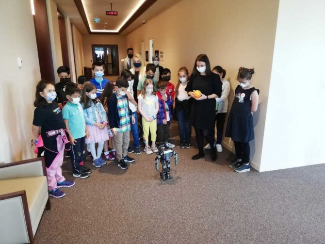 Kütüphane ziyaretiyle ilgili düşüncelerini paylaşan Ata Alp Kocaman, "7 yaşındayım. İlk önce yemek yedik, sonra da gezdik. Robotlara baktık, robot yürüyordu, düşünce ayağa kalkabiliyordu. Bir şut attı gol oldu. Bizim evdekinden daha çok kitap var burada. İyi hissettim. Burası da çok güzel. Burada çok kitap var. Yine gelirim" dedi.