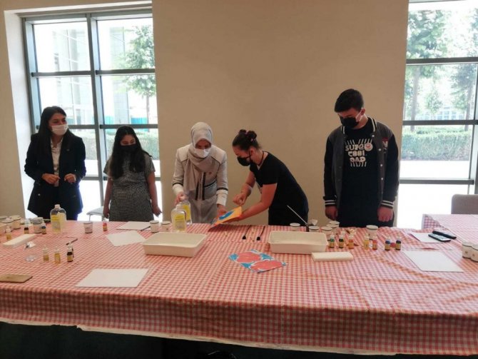 Cumhurbaşkanlığı Millet Kütüphanesinde bir araya gelen onlarca şehit çocuğu, kendileri için hazırlanan atölyelerde farklı deneyimler yaşadı. 7-16 yaş gurubundaki çocuklar, Keşif, Tasarım ve Teknoloji atölyesinde de robotlar ve kodlama hakkında eğitim alırken ilk kez ebru yapma deneyimi de yaşadı.