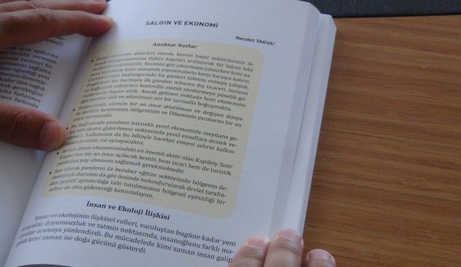 Korona virüs salgını sürecinde sağlıkçı, hasta, esnaf, iş dünyası ve belediyelerin yaşadığı zorlukları 32 bölümle bir araya toplandığı kitapta yıllar sonra olası bir salgın tehlikesine karşı alınması gereken tedbirler deneyimli ellerin kalemiyle geleceğe ışık olacak. İHA muhabirine konuşan Van Eğitim ve Araştırma Hastanesi Başhekimi Doç. Dr. Sebahattin Çelik, Covid-19 salgınının insan ve dünya üzerinde bıraktığını etkileriyle ilgili ilk defa böyle bir kitabın çıkarıldığını söyledi. Çelik, "Van Eğitim ve Araştırma Hastanesi olarak Van, çevre iller, ilçeler dahil olmak üzere 3 milyona yakın vatandaşımıza burada hizmet üreten bir hastaneyiz. Korona virüsün başladığı günden bu yana da pandemi hastanesiyiz. Bu süreç içerisinde hem sağlık çalışanları, hem Van halkı, Van esnafı, Van iş insanları ve hastalarımız bu salgından ciddi etkilendi. Bu etkilenmeleri, bu yaşadığımız olayları Van Eğitim ve Araştırma Hastanesi çalışanları olarak kitaplaştırmak istedik. Bu kitap bildiğiniz klasik kitaplar gibi değil, diğer kitaplardan ayırt edici özellikleri var. Öncelikle bu 32 bölümden oluşan her bölümün ayrı ayrı özelliği olan bir kitap. Kitabın en önemli özelliklerinden sağlık çalışanları dışında esnafımızın temsilen bir yazının olması, iş insanlarını temsilen Van TSO tarafından kaleme alınması, belediyelerde bu pandemi sürecinde çok etkilendi, belediyelerinde bu anlamda yaşadığı deneyimler, sevindirici, üzücü olaylar mutlaka oldu, onların da kitabımızda yazdığı bir bölüm yer almaktadır" dedi.