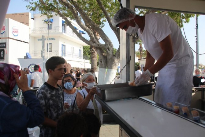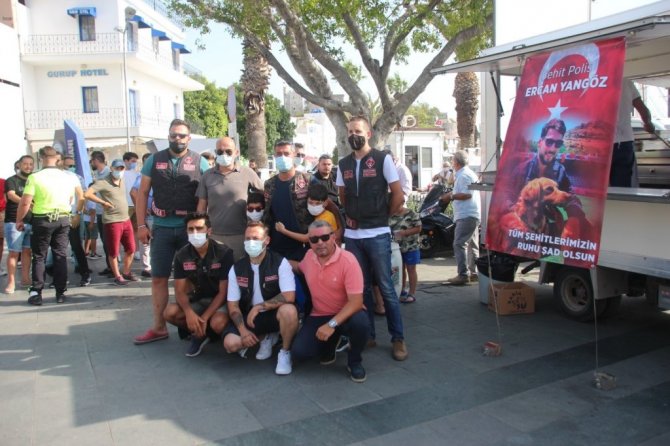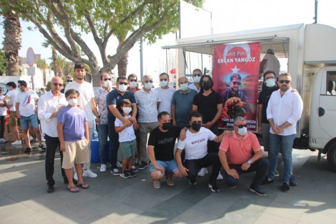 Muğla'nın Bodrum ilçesinde silahlı saldırı sonucu şehit olan polis memuru Ercan Yangöz için Belediye Meydanı'nda lokma döktürüldü, dualar okundu.