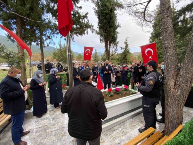 Hisarbey İlkokulu'ndaki törenin ardından, şehit polis memuru Uğur Sarıkaya'nın Yeşilçam köyündeki kabri başında dua edildi.