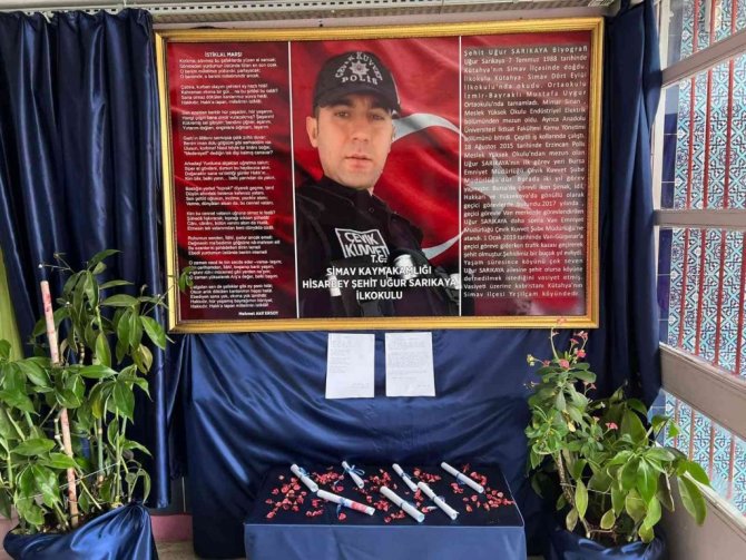 Kütahya'nın Simav ilçesine bağlı Yeşilçam köyü nüfusuna kayıtlı şehit polis memuru Uğur Sarıkaya'nın adı, Simav'a bağlı Hisarbey İlkokulu'na...