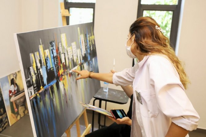 Şehitkamil Belediyesi tarafından Şehitkamil Sanat Merkezi'nde kadınlara yönelik hayata geçirilen resim kursuyla kadınlar hem eğitim görüyor hem de yapmış...