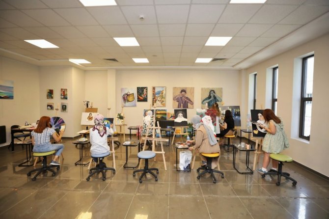 Şehitkamil Sanat Merkezi'nde (ŞSM) bir süredir pandemi nedeniyle kapalı kalan resim kursu, normalleşme dönemiyle birlikte tekrar kapılarını açtı. Resim kursuna katılan kadınlar, ücretsiz kursta eğitim görerek resim yapmayı öğreniyorlar. Yağlı boya, sulu boya ve karakalem çalışmaları yapan kursiyerler, birbirinden başarılı eserler üretiyorlar.