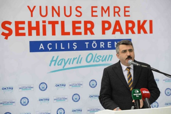 Yıldırım Belediyesi'nin Yunus Emre Mahallesi'nde hayata geçirdiği "Şehitler Parkı" düzenlenen törenle ilçe sakinlerinin hizmetine sunuldu. Yunus Emre Şehitler Parkı'nın açılış törenine Yıldırım Belediye Başkanı Oktay Yılmaz'ın yanı sıra AK Parti Bursa Milletvekili Refik Özen, Yıldırım İlçe Kaymakamı Adem Yazıcı, Büyükşehir Belediye Başkanı Alinur Aktaş, AK Parti İl Başkan Yardımcısı Setenay Yüksel Olguner, AK Parti Yıldırım İlçe Başkanı Ali Erbay, MHP Yıldırım İlçe Başkanı Halil İbrahim Bozkurt, Yıldırım İlçe Müftüsü İbrahim Halil Demir, BAL-GÖÇ Federasyon Başkanı Kader Özlem, belediye meclis üyeleri, şehit ve gazi yakınları, mahalle sakinleri ve çocuklar katıldı. Hacı İbrahim Altan Cami İmamı Muhammet Kırmızı'nın Kuran-ı Kerim tilaveti ile başlayan program açılış konuşmalarıyla devam etti.
