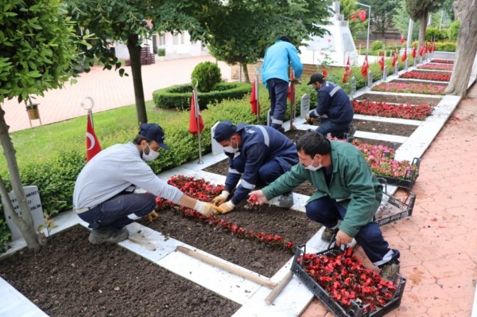 Şehitlikler çiçek açtı
