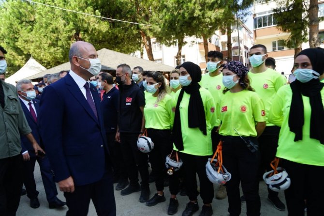 Öte yandan 30 Ağustos Zafer Bayramı'nın kutlandığı tören alanına gelen komando birliği, ilçe merkezinden geçtiği sırada marşlar söyledi. Ellerinde Türk Bayrağı ve Atatürk Bayrağı da bulunan komandolar, hep bir ağızdan seslendirdiği marşlarla yeri göğü inletti. Komandoların söylediği marşlar, tören alanına gelen davetliler tarafından büyük alkış topladı. Törende Jandarma Asayiş Komutanlığı (JAK), Polis Sualtı Arama Kurtarma, Polis Arama Kurtarma (PAK), AFAD Başkanlığı, ANDA, Türk Kızılayı, UMKE, 112 Acil Sağlık ekipleri gibi kurumlarda yer aldı. İçişleri Bakanı Süleyman Soylu, katılımcıların bayramını kutlamasının ardından tören sona erdi.