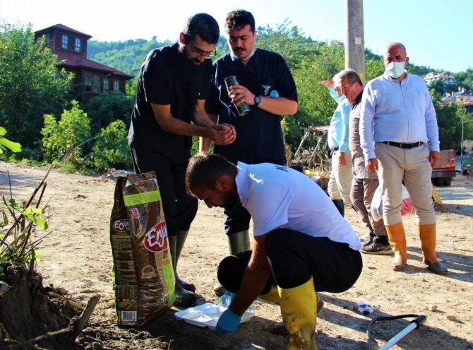 Öte yandan Türk Veteriner Hekimleri Birliği Başkanı Ali Eroğlu, Kastamonu Veteriner Hekimler Odası Başkanı Hacı İbrahim Maşalacı, Kastamonu Mahalli İdareler Birliği Müdürü Adnan Tot ve beraberindeki heyet, afet bölgesinde incelemelerde bulunarak, selzedelere geçmiş olsun dileklerinde bulundu, kurdukları Afet Bölgesi Sokak ve Ev Hayvanları Geçici Rehabilitasyon Ünitesi hakkında bilgi vererek hayvanları burada ücretsiz bir şekilde tedavi ettiklerini söyledi.