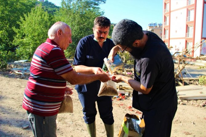 Sel felaketini haber alır almaz Türk Veteriner Hekimleri Birliği olarak Kastamonu Veteriner Hekimleri Odasıyla istişare ettiklerini ve bir an önce çalışmaya başladıklarını söyleyen Türk Veteriner Hekimleri Birliği (TVHB) Başkanı Ali Eroğlu, "Yöredeki bütün meslektaşlarımız, özellikle selden zarar gören hayvanlarımıza müdahale için kolları sıvadılar, bölgeye intikal ettiler. Hem Kastamonu'daki serbest veteriner hekimleri arkadaşlarımız hem kamuda çalışanlar, ayrıca Doğa Koruma ve Milli Parklar Müdürlüğümüzdeki ve Kastamonu Belediyesinde çalışan veteriner hekimler buraya intikal ettiler. Bugüne kadar da yüzlerce hayvan müdahale ettiklerini söylediler. Selden çok fazla zarar gören hayvanların olmadığını, zarar görenlerin en kısa zamanda bu geçici ünitede tedavi edildiğini, ileri bakım için Kastamonu Belediye Bakım Evi'ne ve serbest veteriner hekimi arkadaşlarımızın kliniklerine gönderiyorlar. Ben mahalli idareler birliğine, hem bizim veteriner hekimliği odasındaki arkadaşlarımıza hem Doğa Koruma ve Milli Parklar'ın buradaki yetkililerine çok teşekkür ediyorum. Çünkü bu çok önemli bir hizmet, acil müdahale için kurulmuş. Buradaki çalışan veteriner hekimleri arkadaşlarımıza teşekkür ediyorum. Büyük bir gayretle ve fedakarca 7/24 burada hizmet veriyorlar" dedi.