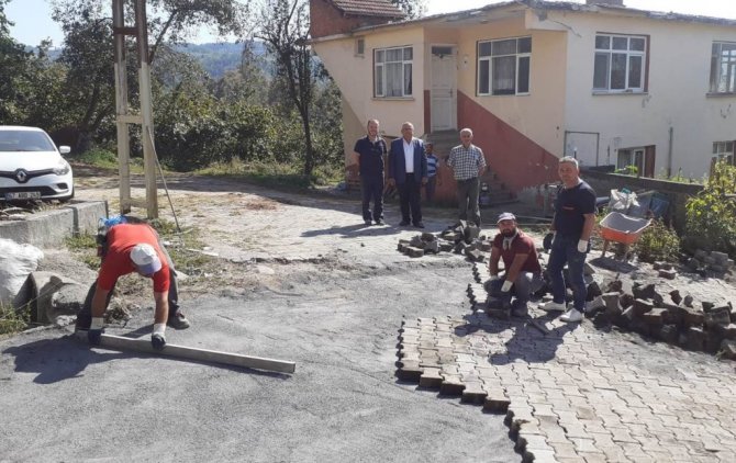 Belediye Başkanı Bayram Başol, Sarıkaya Mahallesi Yukarı Enehanlı Sokak'ta devam eden kilit parke taşı çalışmalarını yerinde inceledi. İş makinaları ile düzeltilen yolda daha sonra parke taşları işçiler tarafından tek tek yerleştirildi.