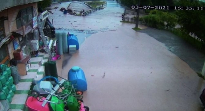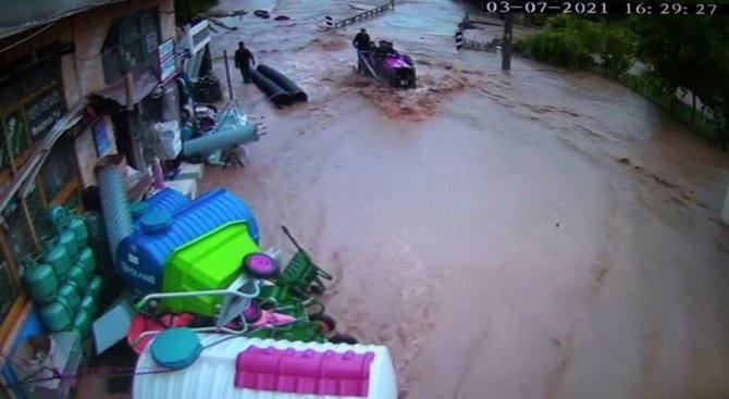 Sakarya'nın Kocaali ilçesinde aniden bastıran yağışla birlikte oluşan sel felaketi an be an güvenlik kameralarına yansıdı.