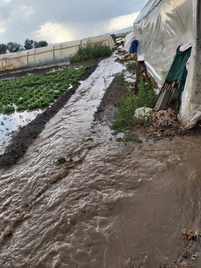 Sera sahibi Necati Yıldızer, dolu ve su baskınının yaklaşık 50 dönüm alanda hasara neden olduğunu belirterek, "3 aylık emeklerimiz heba oldu. Ürünlerimizi hasat etmeye hazırlanırken yağan yağmur ve sel önemli ölçüde zarara neden oldu. Zararımız büyük" diye konuştu.