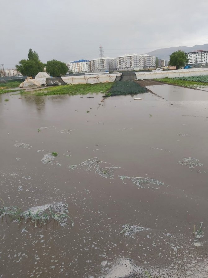 Erzurum'da etkili olan sağanak yağış ve dolu seralarda zarara neden oldu.