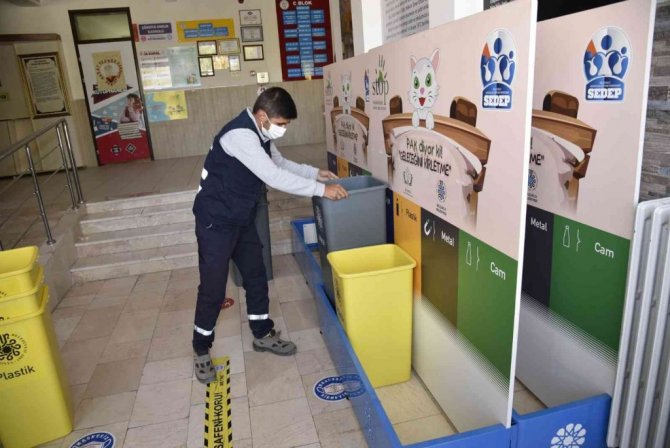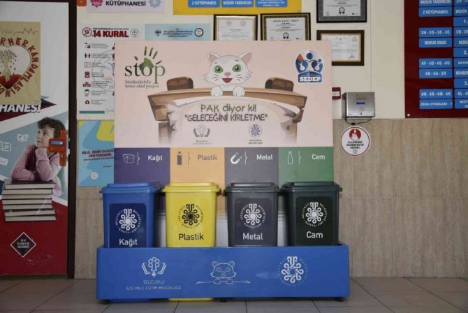 Konya'nın merkez Selçuklu İlçe Belediyesi, Sürdürülebilir Temiz Okul Projesini (STOP) ilçe genelinde 65 okula dağıttığı 260 geri dönüşüm kutusuyla sürdürüyor.